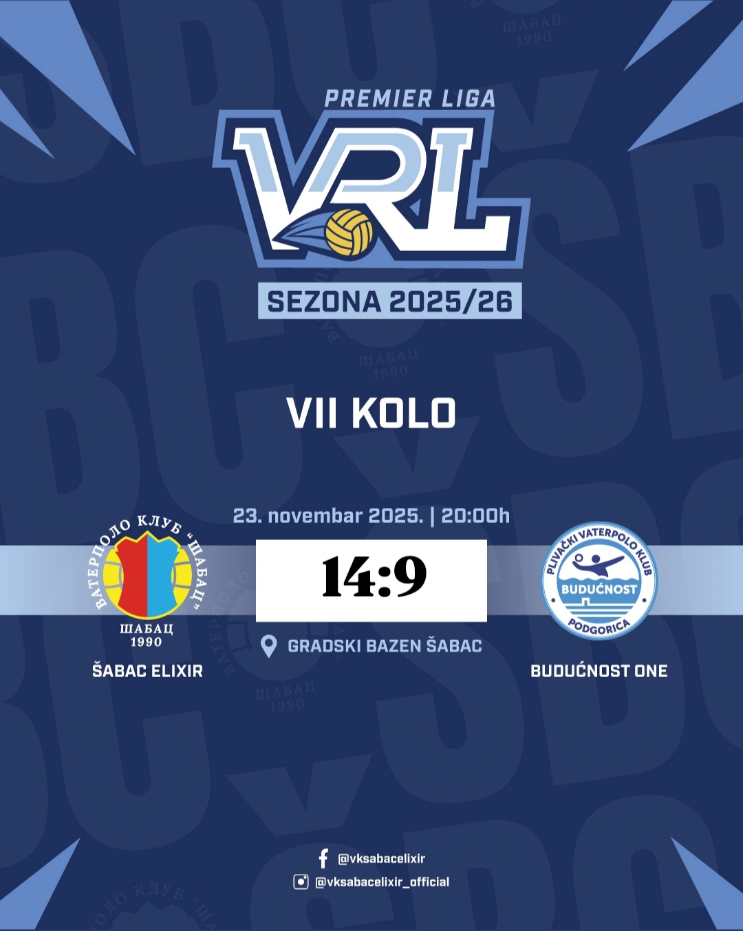 U svojoj prvoj sezoni u novoformiranoj VRL ligi, Šabac Elixir je odmah ostavio snažan trag — titula jesenjeg prvaka ide u Šabac! Večerašnja pobeda u poslednjem kolu nad ekipom Budućnosti rezultatom 14:9 potvrdila je odličan rad i sjajnu formu tokom cele polusezone.
