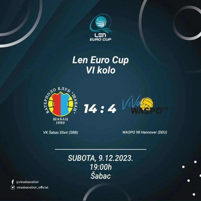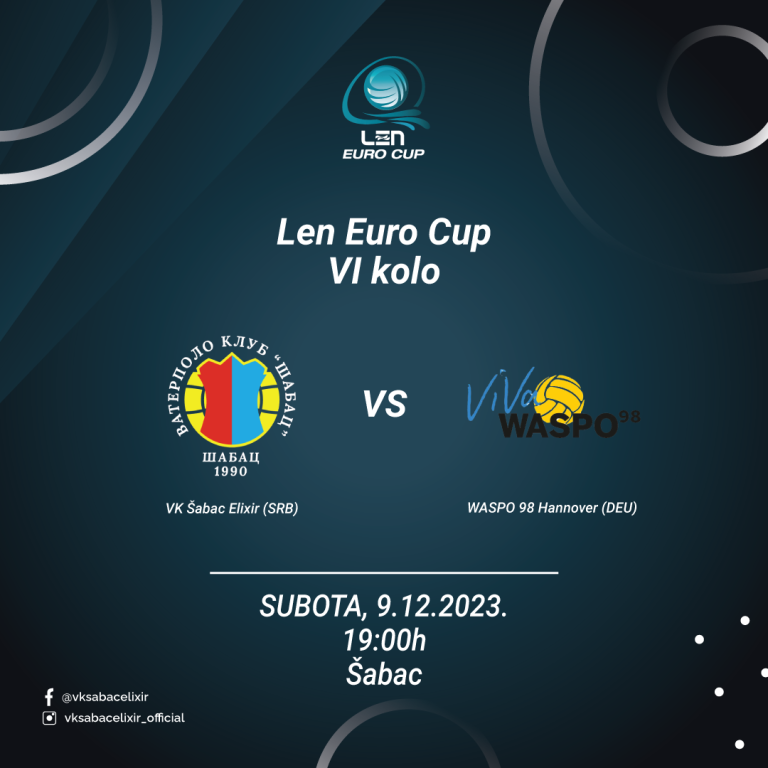 U subotu 9. decembra na Gradskom bazenu u Šapcu očekuje nas poslednje kolo grupne faze